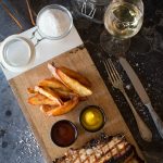 ( μαριναρισμένη κόντρα χωρίς κόκαλο, ψημένη στην σχάρα με πατάτες τηγανιτές ) Πρόταση ψησίματος: medium